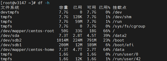 但使用df -h 未看到挂载的文件系统
