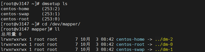 使用命令 dmsetup 查看