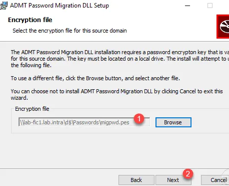 指示加密密钥的位置 1个 然后单击下一步 2。