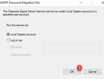 将在两个域之间完成的第一次对象迁移期间配置迁移帐户。在本教程中,我使用了目标域的管理员帐户。如果要将帐户专用于ADMT,则ADMT必须是目标域的Domain Admins组的成员和源域的BUILT\Administrators组的成员。
