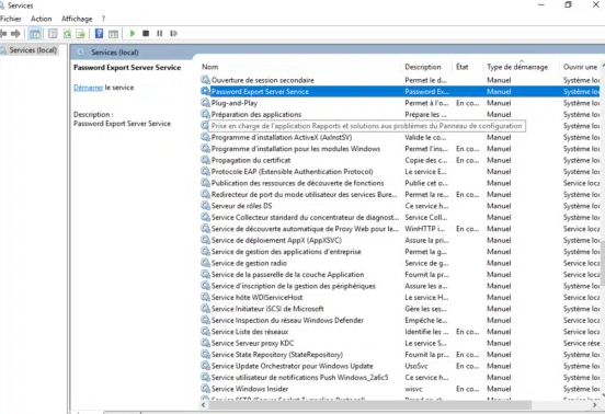 重新启动后,找到并启动“密码导出服务器服务”服务。