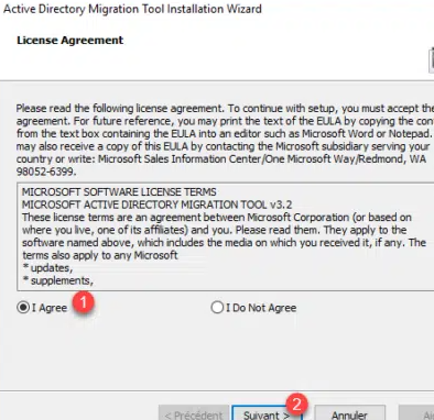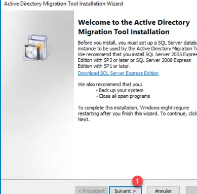 在ADMT控制台中,右键单击“ Active Directory迁移工具1”,然后单击“组帐户迁移向导2”以启动该向导。