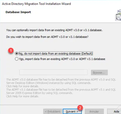 选择否,不从现有数据库导入数据1,然后单击下一步2。
