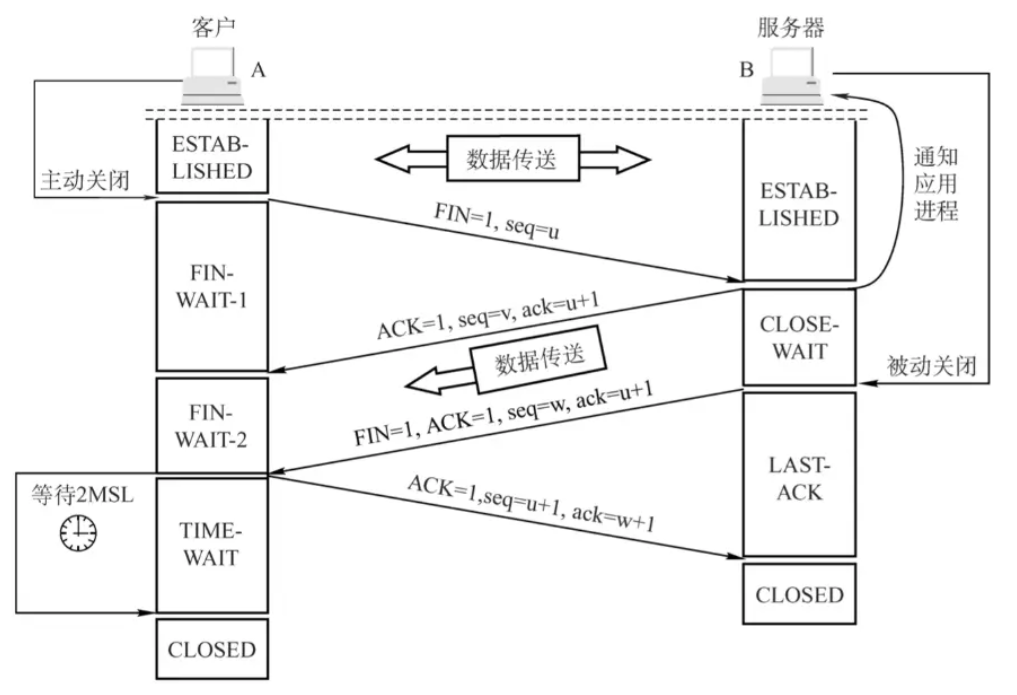 表示连接的一端(通常是主动关闭连接的一端)已经发送并确认了 FIN(finish)报文,且已经接收到对方的 FIN 报文。此状态主要用于确保网络上的延迟数据包不会影响后续的连接。