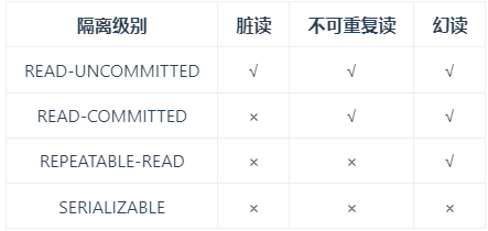 - 幻读(phantom read):指一个事务在前后多次查询同一个范围的过程中间,另外一个事务进行了数据的新增,后面的查询看到了前面的查询未看到的行。