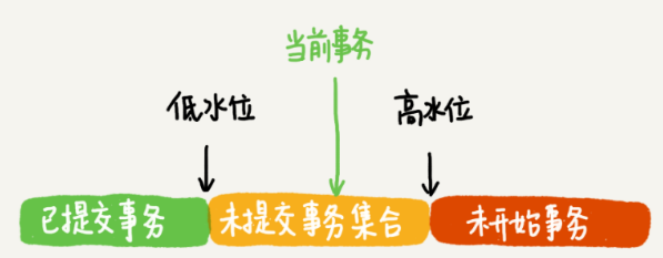 - 数组里面事务 ID 的最小值记为低水位,当前系统里面已经创建过的事务 ID 的最大值加 1 记为高水位。这个视图数组和高水位,就组成了当前事务的一致性视图(read-view)。
