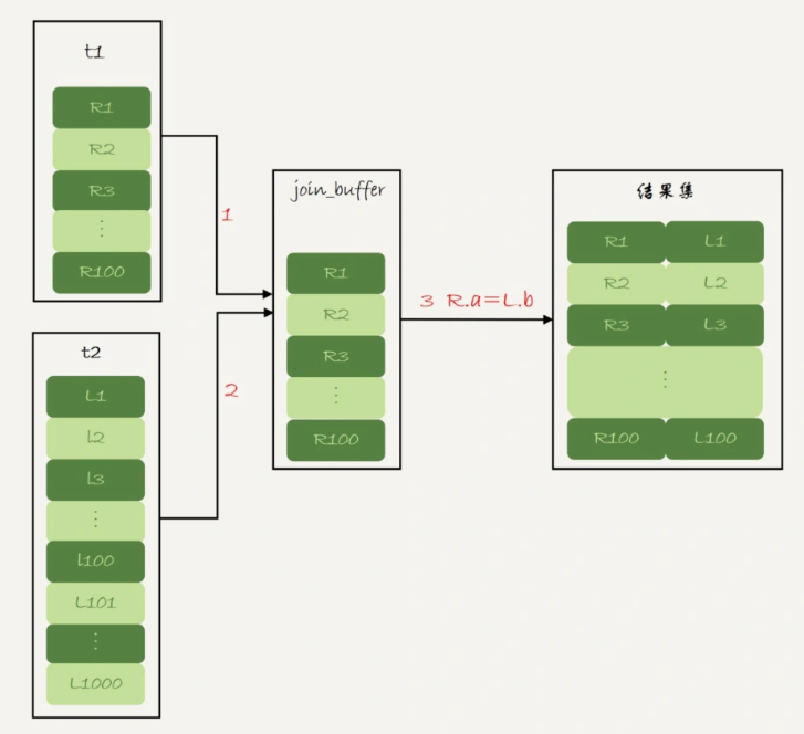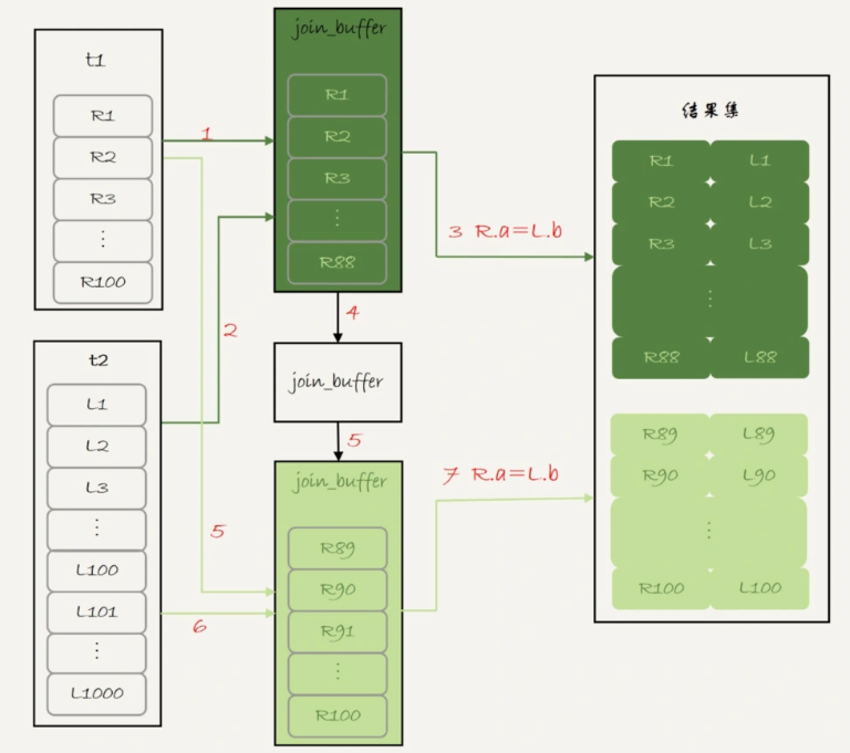 - 重复执行步骤 1 到 3,直到表 t1 的末尾循环结束。
