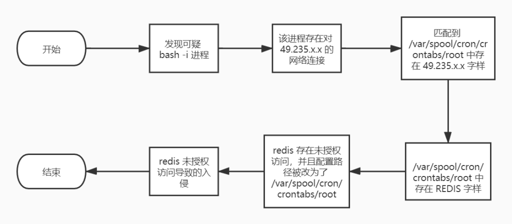 有的时候通过基础排查并不能直接找到入侵点,这时就需要从外部模拟入侵,比如上面这个场景从外部可以发现 redis 的未授权访问,通过常用的 redis 命令执行的方法就可以很快地找到攻击者留下的后门。